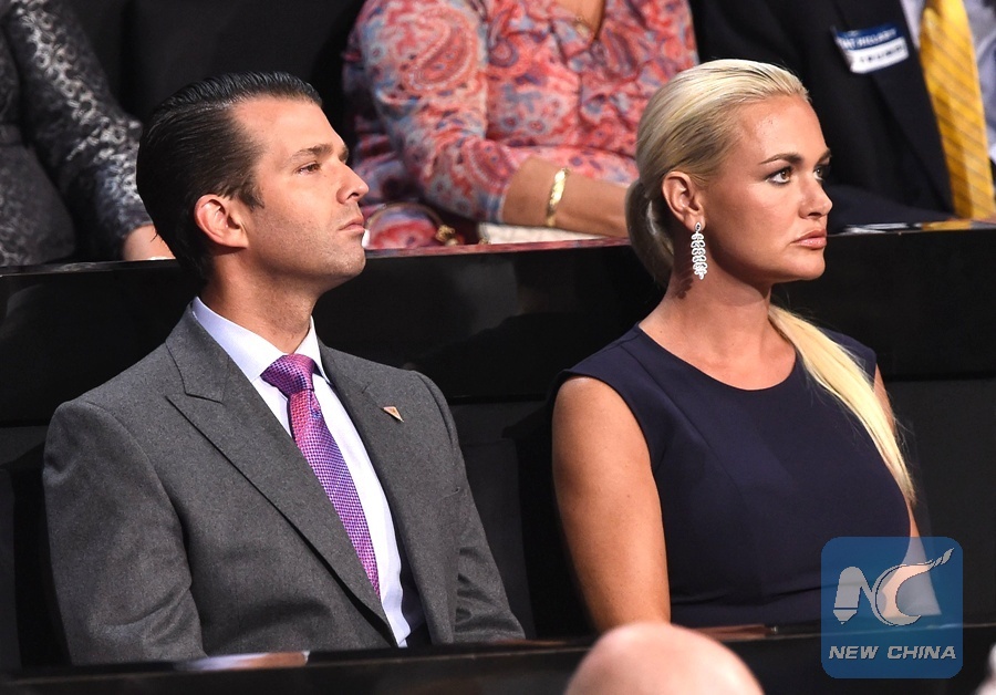 File photo taken on July 21, 2016 shows that Donald Trump Jr., and his wife Vanessa Trump look on during the Republican National Convention at the Quicken Loans Arena in Ohio, the United States. (Xinhua/AFP Photo)