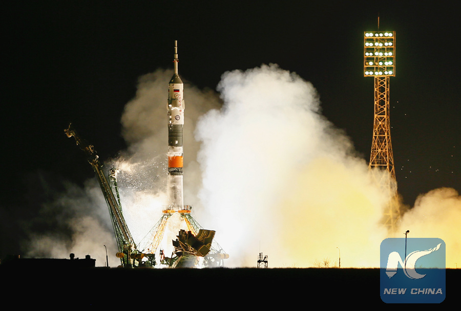 MOSCOW, March 21 (Xinhua) -- A Russian carrier rocket blasted off on Wednesday from the Baikonur Cosmodrome in Kazakhstan, sending three astronauts aboard the Soyuz MS-08 spacecraft to the International Space Station (ISS).