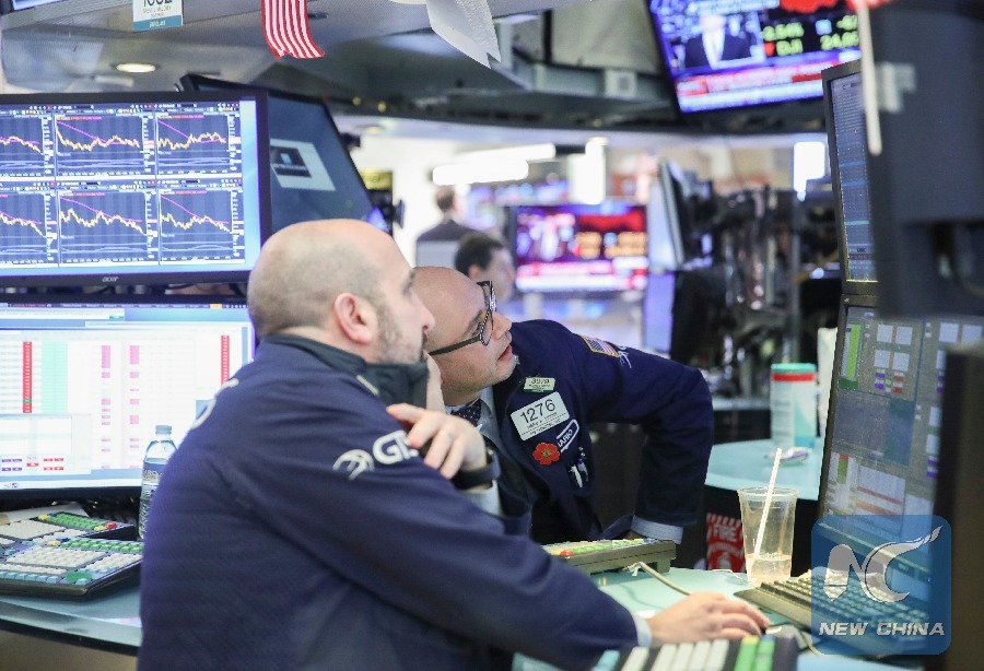 Traders work at the New York Stock Exchange in New York, the United States, March 22, 2018. U.S. stocks ended lower on Thursday, with the Dow plunging over 700 points, after the U.S. President Donald Trump announced to impose tariff on imported products from China. (Xinhua/Wang Ying)