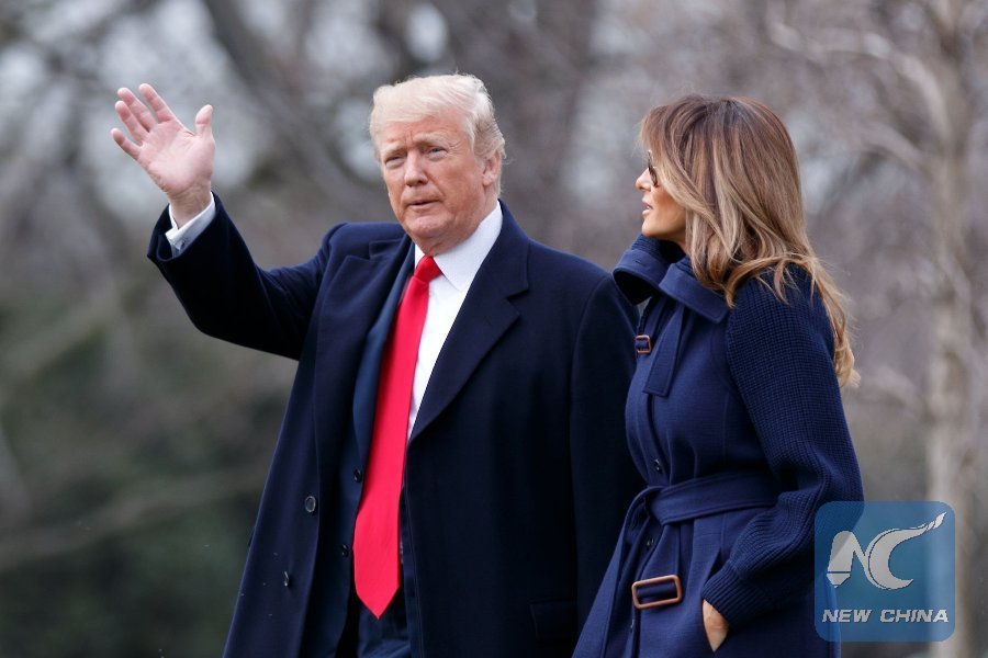 U.S. President Donald Trump (L) and First Lady Melania Trump depart the White House in Washington D.C., the United States, on March 19, 2018. (Xinhua/Ting Shen)