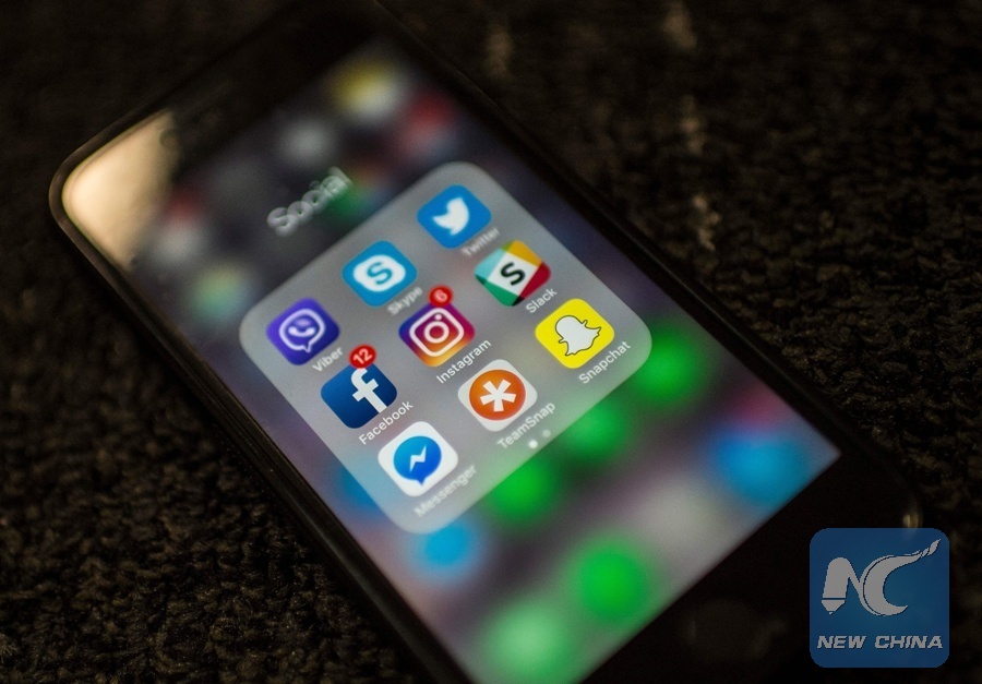 In this file photo taken on March 21, 2018, social network applications including Facebook, Instagram, Slack, Snapchat, Twitter, Skype, Viber, Teamsnap and Messenger, are on display on a smartphone in Washington D.C. (Xinhua/AFP)