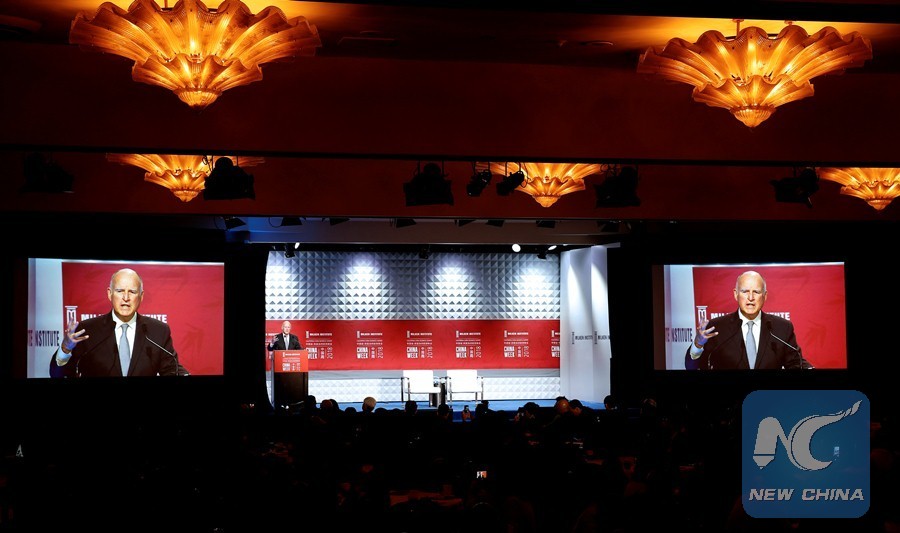 LOS ANGELES, May 3 (Xinhua) -- U.S. Governor of California Jerry Brown called for more cooperation with China on Thursday, saying that the two countries have great potential as trade partners.
