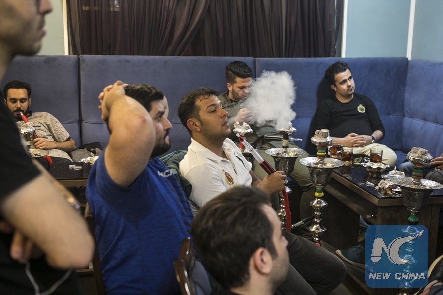 People watch the news broadcast on U.S. withdrawal from the Iran nuclear deal at a teahouse in central Tehran, capital of Iran, on May 8, 2018. (Xinhua/Ahmad Halabisaz)