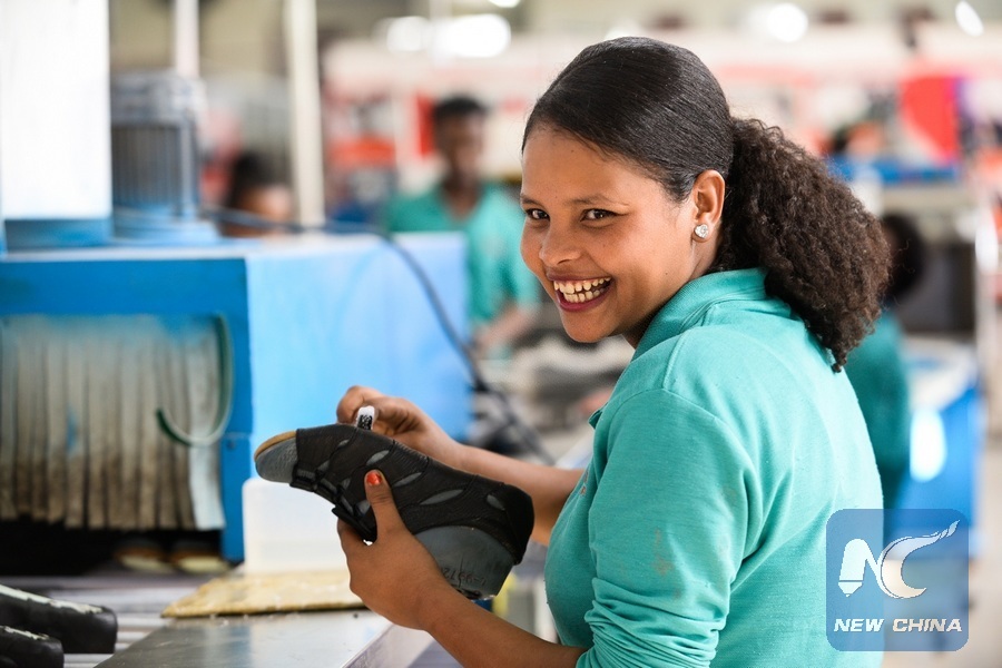 A local employee works at Huajian factory, south of Addis Ababa, capital of Ethiopia, Oct. 18, 2016. (Xinhua/Michael Tewelde)