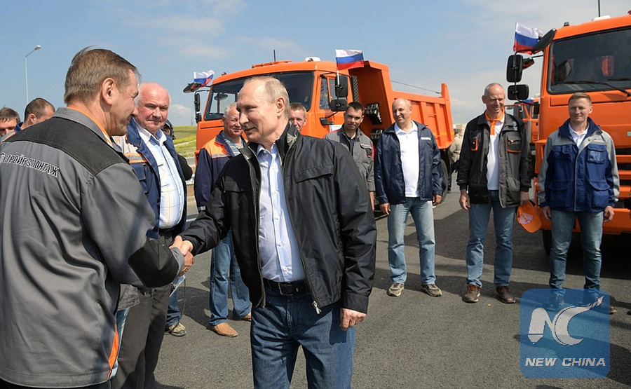 MOSCOW, May 15 (Xinhua) -- Russian President Vladimir Putin officially opened the Crimean Bridge that links southern Russia and Crimea on Tuesday.