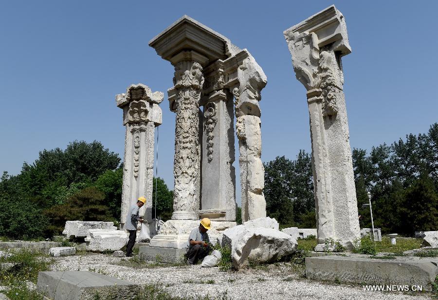 BEIJING, May 24 (Xinhua) -- The surviving remnants of columns and gates in Beijing's Yuanmingyuan - or Old Summer Palace - will be reinforced to prevent them from collapsing, Thursday's China Daily reported.