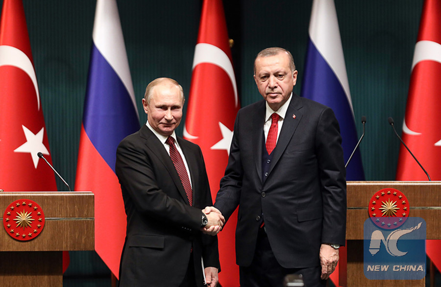 ANKARA, May 29 (Xinhua) -- Turkish President Recep Tayyip Erdogan and his Russian counterpart Vladimir Putin on Tuesday discussed developments in Syria and economic cooperation over the phone.
