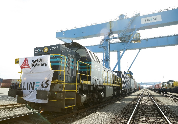 The China-Europe freight train from Tangshan of China arrives at Antwerp Port, Belgium, May 12, 2018. (Xinhua/Ye Pingfan)