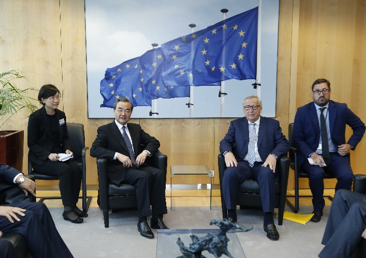 Meeting with Juncker last Friday in Brussels ahead of the 20th EU-China summit, Wang said that as two major forces in the world, China and the EU should jointly safeguard the purposes and principles of the UN Charter, improve global governance, and advocate an open world economy.