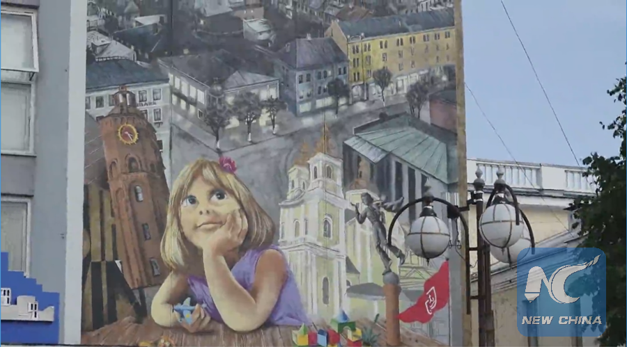 This photo taken from a footage shows a painting on the exterior of a building in Vinnytsia, Ukraine on June 6, 2018. (Xinhua)