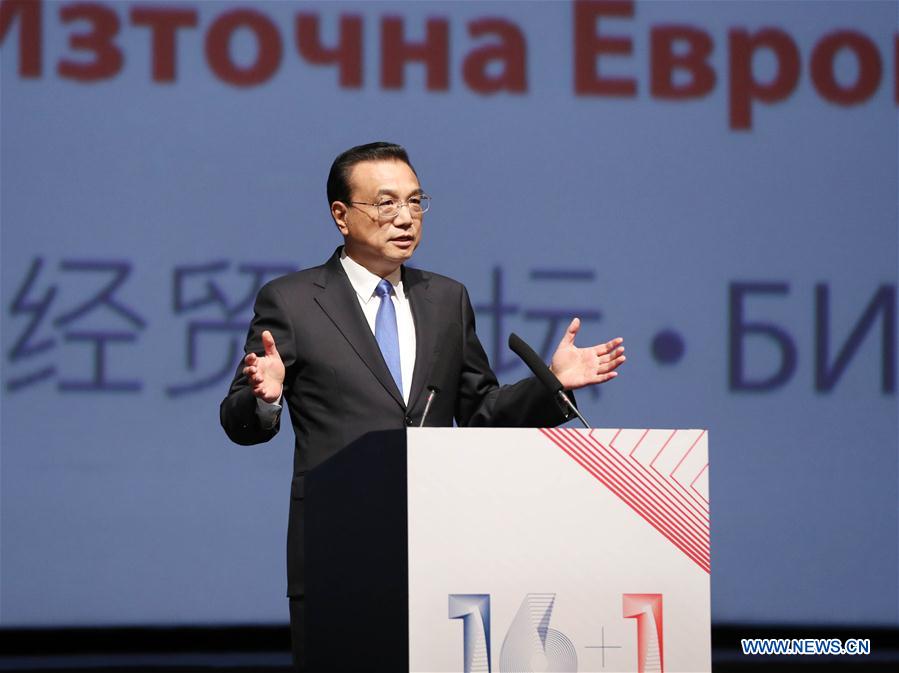Chinese Premier Li Keqiang addresses the opening ceremony of the 8th business forum between China and Central and Eastern European Countries (CEEC) in Sofia, Bulgaria, July 7, 2018. (Xinhua/Liu Weibing)