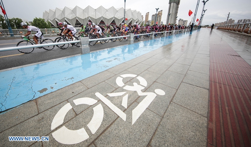 Cyclists compete in the second stage of the Tour of Qinghai Lake in northwest China's Qinghai Province, on July 23, 2018. (Xinhuanet Photo by Jia Haiyuan)