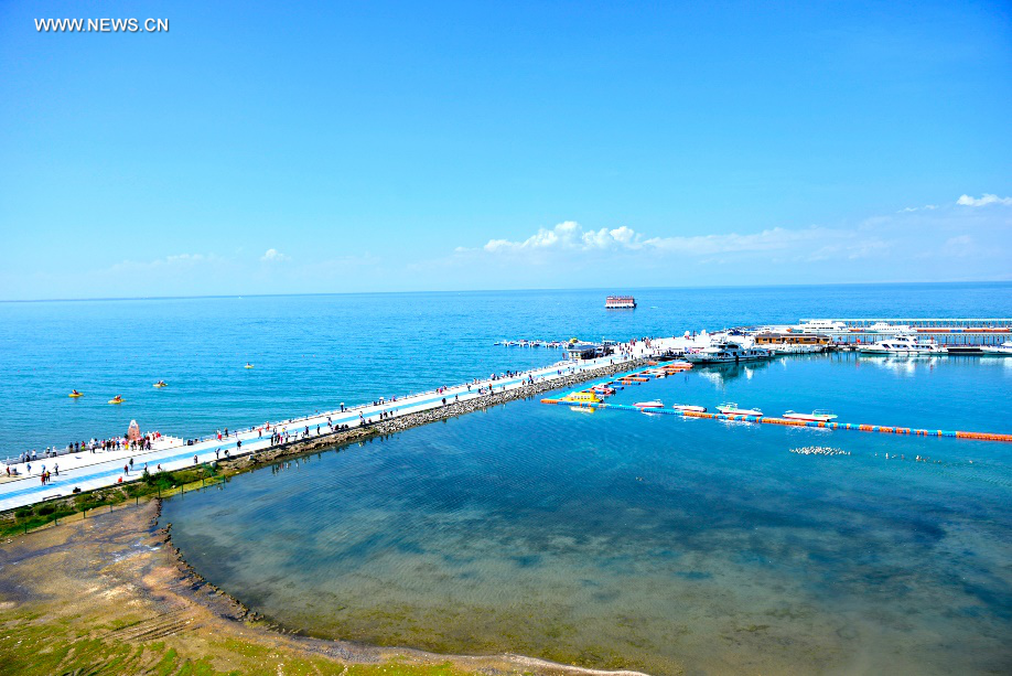 A glimpse of Qinghai Lake, on June 27, 2018. (Xinhuanet Photo by Pan Binbin)