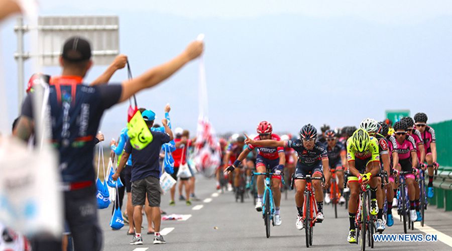 Cyclists compete in the eighth stage of the Tour of Qinghai Lake in northwest China's Gansu Province on July 29, 2018. (Xinhuanet Photo by Jia Haiyuan)