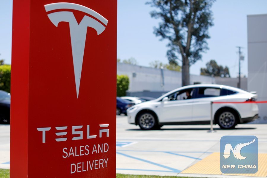 FILE PHOTO: A Tesla sales and service center is shown in Costa Mesa, California, U.S. June 28, 2018. (Xinhua/REUTERS)
