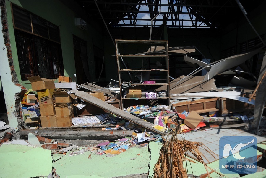 Photo taken on Aug. 8, 2018 shows a collapse elementary school after earthquake in NorthLombok, West Nusa Tenggara, Indonesia, Aug. 8, 2018. (Xinhua/Agung Kuncahya B.)