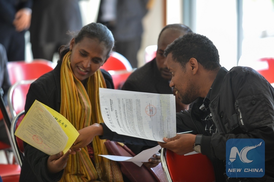 Some of the Ethiopian students look at their scholarships in Addis Ababa, capital of Ethiopia, Aug. 8, 2018. (Xinhua/Michael Tewelde)