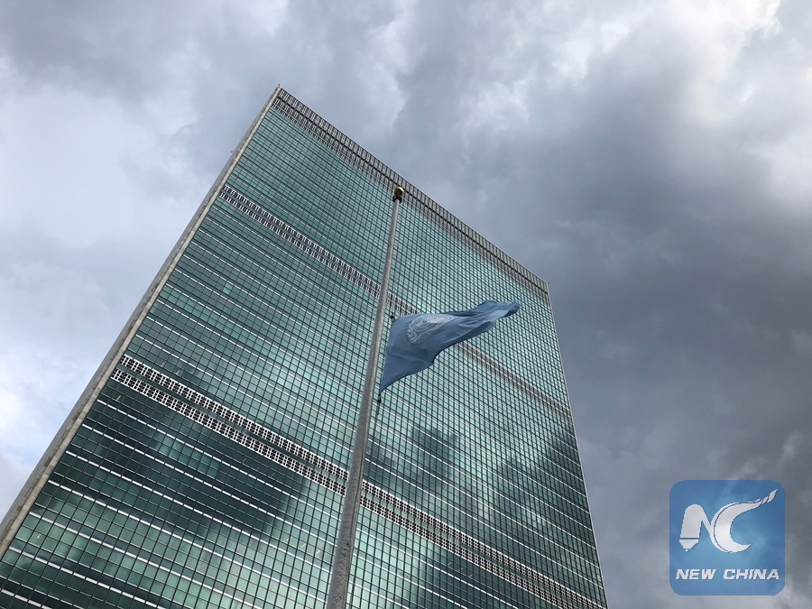 The flag at the UN headquarters in New York is flying at half-mast as the organization marks the death of former Secretary-General Kofi Annan, Aug. 18, 2018. (Xinhua/Li Muzi)