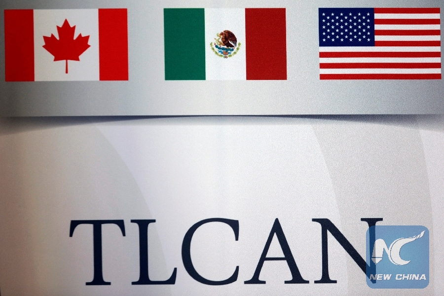 A NAFTA logo is seen during the fifth round of NAFTA talks involving the United States, Mexico and Canada, in Mexico City, Mexico, Nov. 18, 2017. (Xinhua/REUTERS)