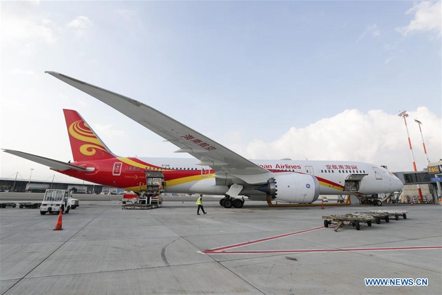 Ground crew serve an aircraft from Guangzhou at Ben-Gurion International Airport near Tel Aviv, Israel, Aug. 2, 2018. (Xinhua/Guo Yu)