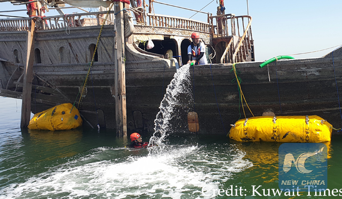 Centuries-old sunken wooden ship salvaged by divers from Kuwait Bay