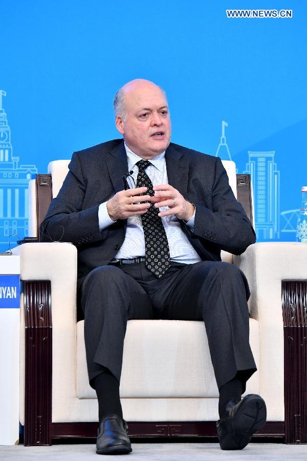 Jim Hackett, president and CEO of Ford Motor Company, speaks at the Parallel Session on Trade and Investment of the Hongqiao International Economic and Trade Forum in Shanghai, east China, Nov. 5, 2018.(Xinhua/Li Xin)