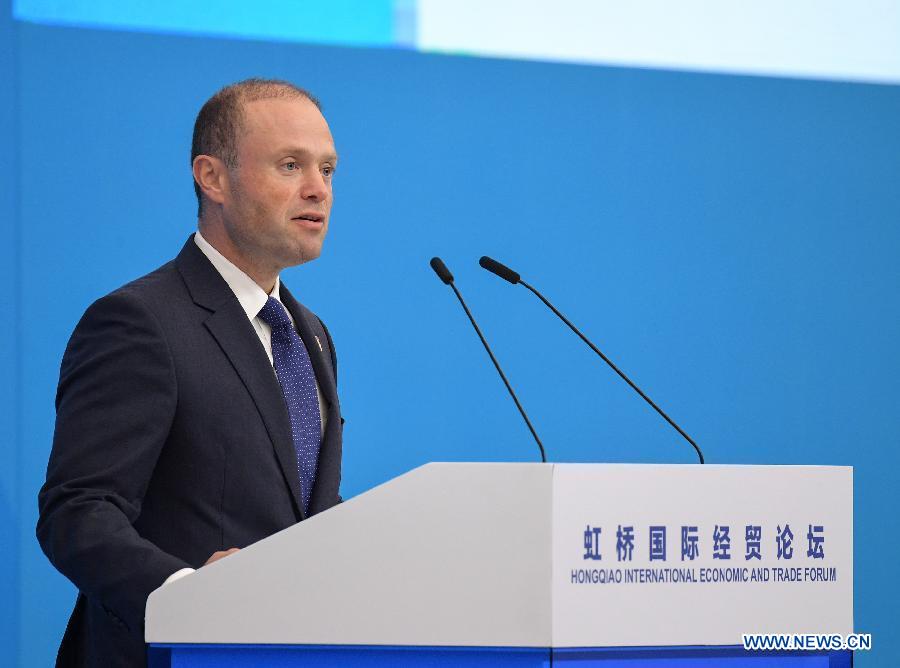 Maltese Prime Minister Joseph Muscat speaks at the Parallel Session on Trade and Innovation of the Hongqiao International Economic and Trade Forum in Shanghai, east China, Nov. 5, 2018.(Xinhua/Li He)