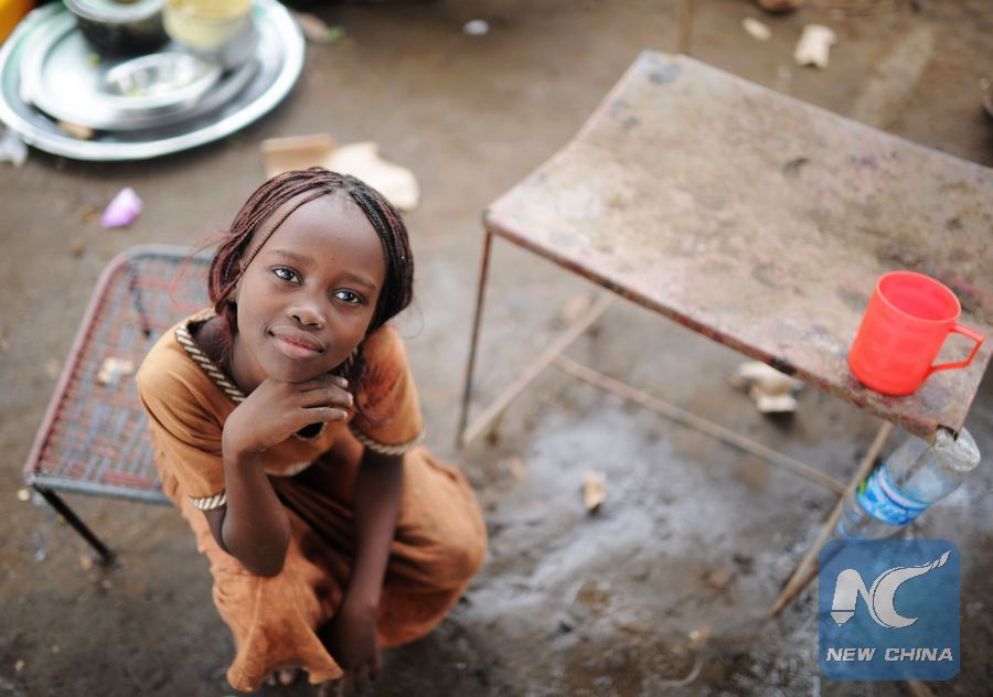 File photo shows a girl waits for aid at dock in Juba, South Sudan, Aug. 13, 2011. (Xinhua/Wu Xiaoling)