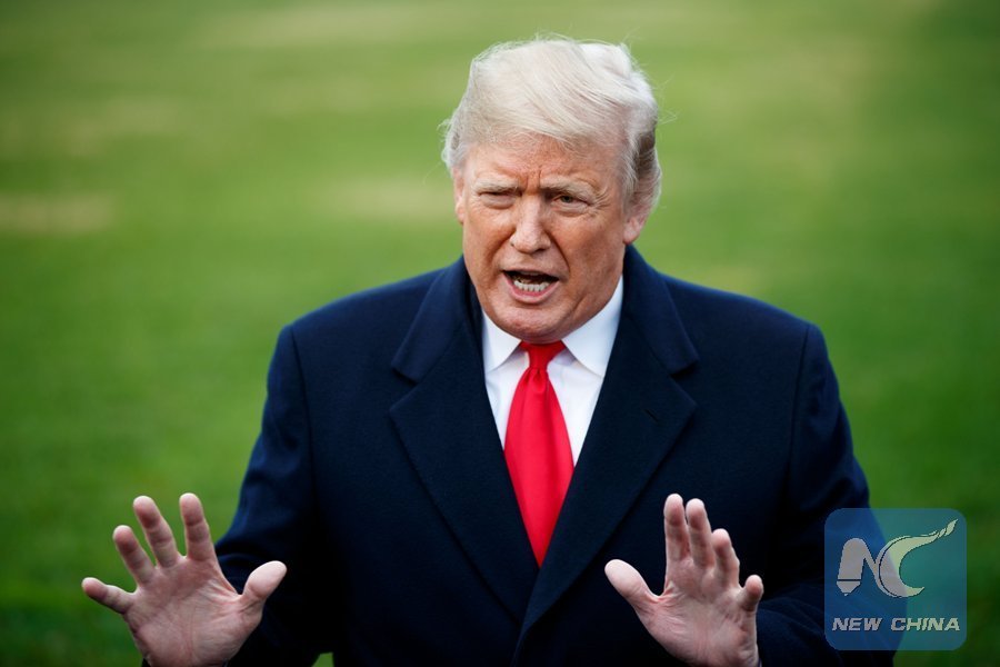 U.S. President Donald Trump speaks to reporters before departing from the White House in Washington D.C., the United States, on Nov. 26, 2018. (Xinhua/Ting Shen)
