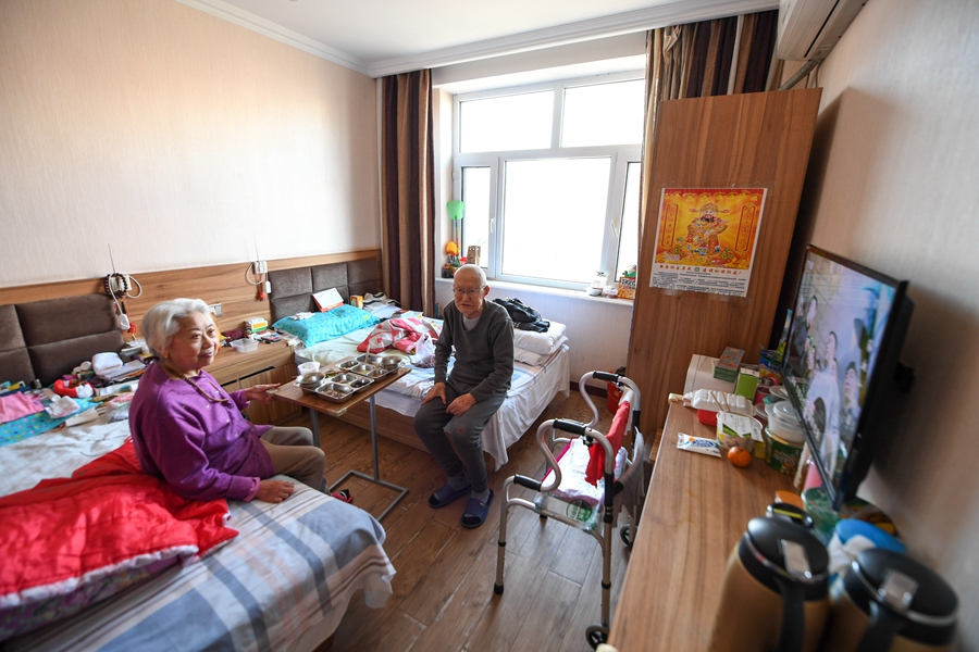 A senior couple rest in their room at a nursing home in Siping, northeast China's Jilin Province, Dec. 5, 2018. (Xinhua/Zhang Nan)
