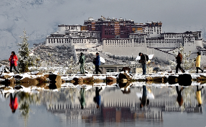 Photo taken on March 30, 2018 shows the Potala Palace after a snowfall in Lhasa, southwest China's Tibet Autonomous Region. (Xinhua/Chogo)