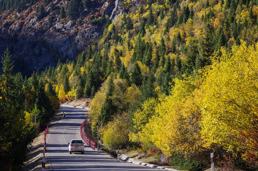 Photo taken on Oct. 19, 2018 shows the autumn scenery in Baxoi County, Changdu, southwest China's Tibet Autonomous Region. (Xinhua/Liu Dongjun)