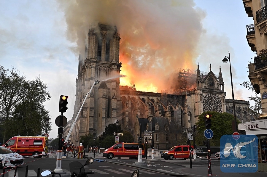 Photo taken on April 15, 2019 shows Notre Dame Cathedral in Paris, France on fire. (Zuma Press photo)