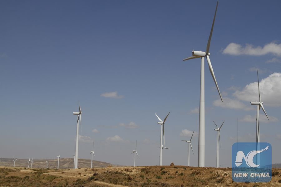 File photo shows the 230 kilo volt Ashegoda Wind Power Project substation near Mekelle Town, 783 km north of Addis Ababa, capital of Ethiopia. The project generates 120 MW of electricity annually. (Xinhua/Michael Tewelde)