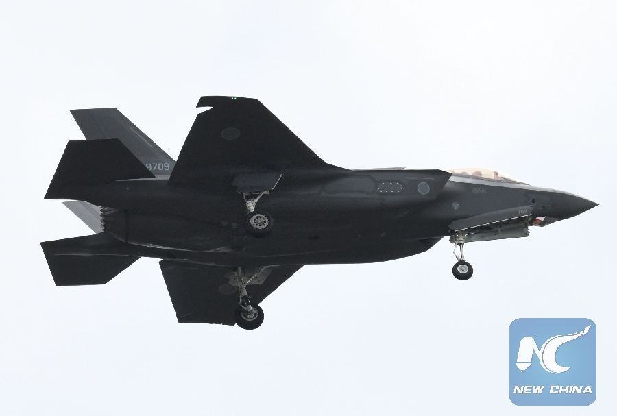 This file photo taken on Oct. 14, 2018 shows an F-35A fighter aircraft from the Japan Air Self-Defense Force taking part in a military review at the Ground Self-Defence Force's Asaka training ground in Asaka, Saitama prefecture. (Xinhua/AFP)