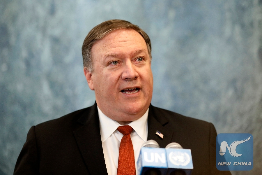 File Photo: U.S. Secretary of State Mike Pompeo speaks to reporters at the UN headquarters in New York, July 20, 2018. (Xinhua/Li Muzi)