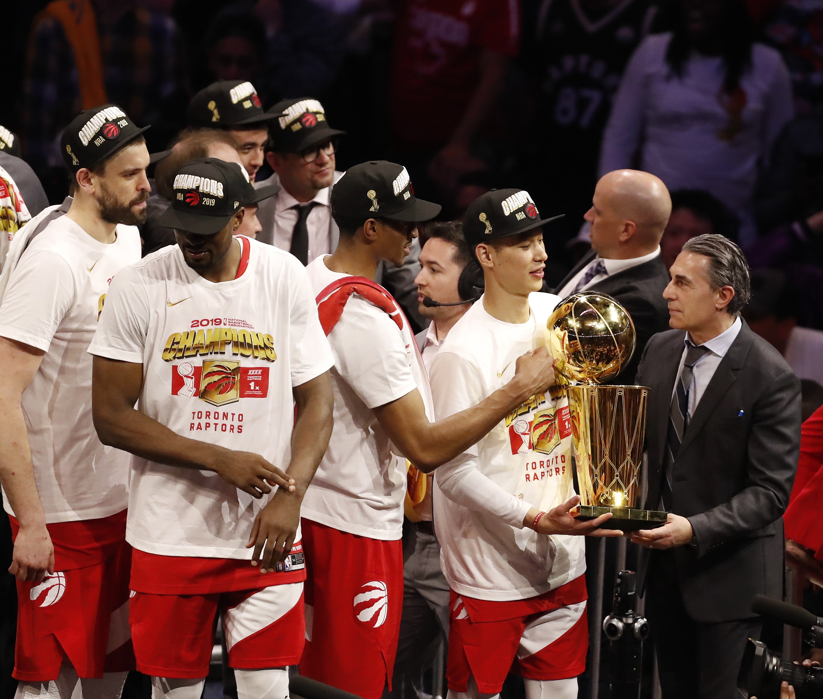 "I can't really think right now, this is crazy. This is awesome man," said Toronto guard Kyle Lowry. "Toronto! Canada! We brought it home baby! We brought it home!"