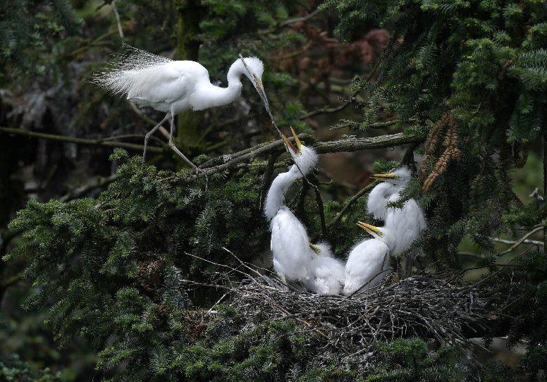 Photo taken on May 21, 2019 shows egrets in Xiangshan Forest Park in Xinjian District of Nanchang, east China's Jiangxi Province. (Xinhua/Peng Zhaozhi)