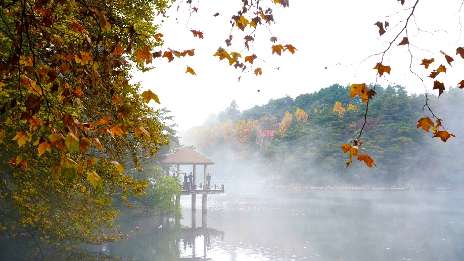 Tourists play along the Ruqin Lake at the Lushan Mountain scenic spot in Jiujiang, east China's Jiangxi Province, Oct. 20, 2018. (Xinhua/Hu Chenhuan)