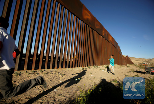 File photo: Children run along the border fence between Mexico and the United States, Feb. 26, 2019. (Xinhua/Reuters)