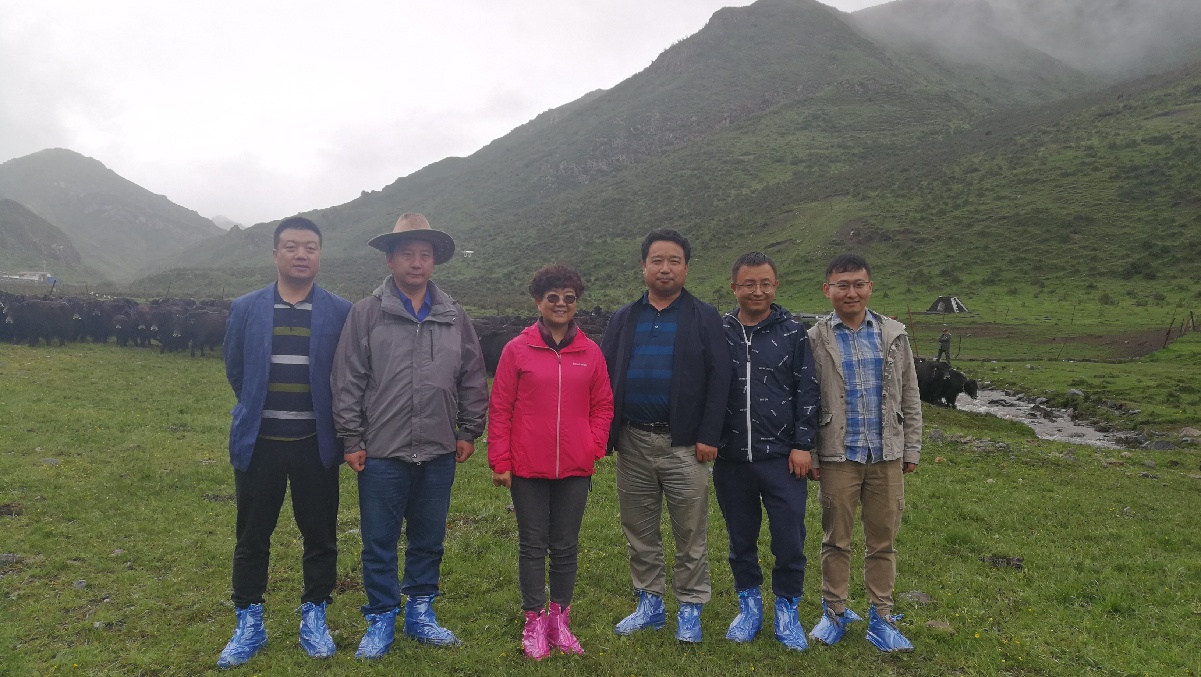 Yan Ping (3rd, left) leads her team to conduct the yak breeding research at Datong Yak Breeding Farm in Qinghai Province. (Photo by Yu Fei)