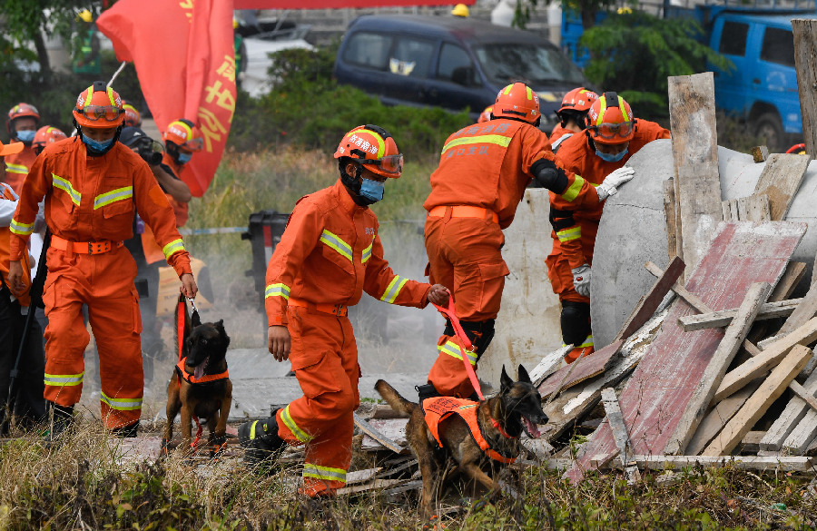 Rescuers participate in a drill in Haikou, south China's Hainan Province, April 30, 2019. (Xinhua/Yang Guanyu)