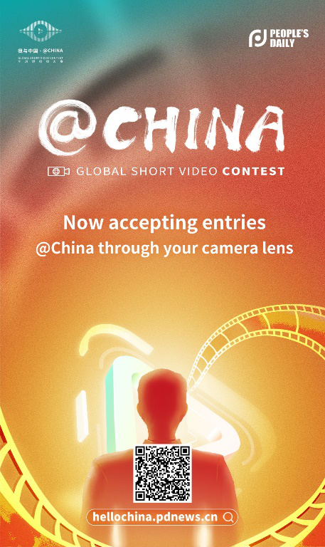 The "@China" global short video contest, sponsored by the People's Daily, is underway. The contest is accepting work from short video creators, enthusiasts, and vloggers worldwide from June 18 to August 15. Candidates can enter by logging on to the contest's official website (hellochina.pdnews.cn) and submit a 3-minute or less video.