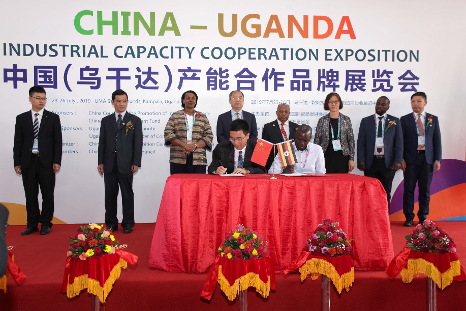 Ugandan and Chinese enterprises sign MOUs during the first China-Uganda Industrial Capacity Cooperation Exposition in Kampala, capital of Uganda, July 23, 2019. (Xinhua/Hajarah Nalwadda)