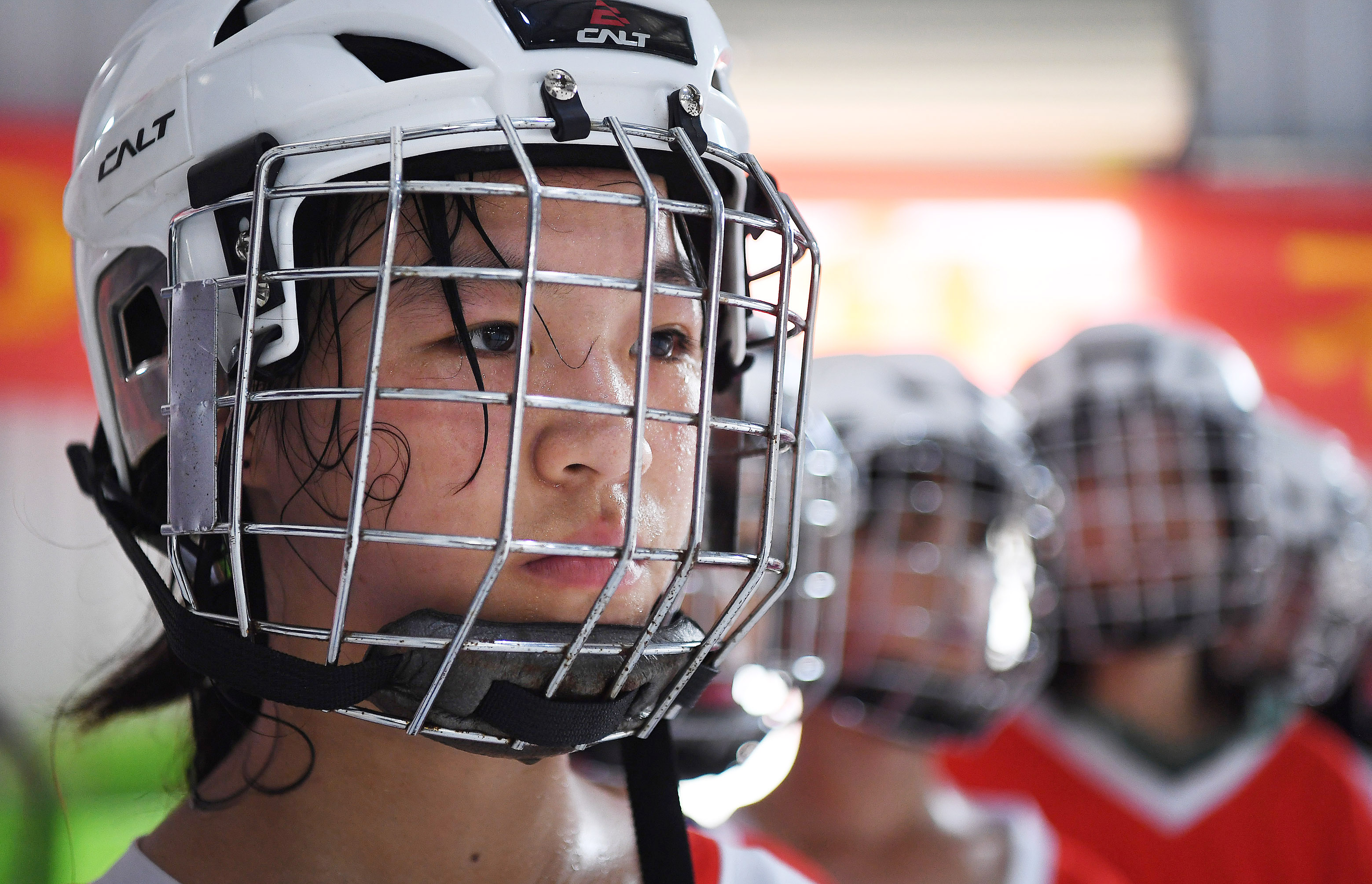 Liao Pinran of Shicheng Ice Hockey Team rests during the break of training in Shicheng, Ganzhou City of east China's Jiangxi Province. (Xinhua/Song Yanhua)