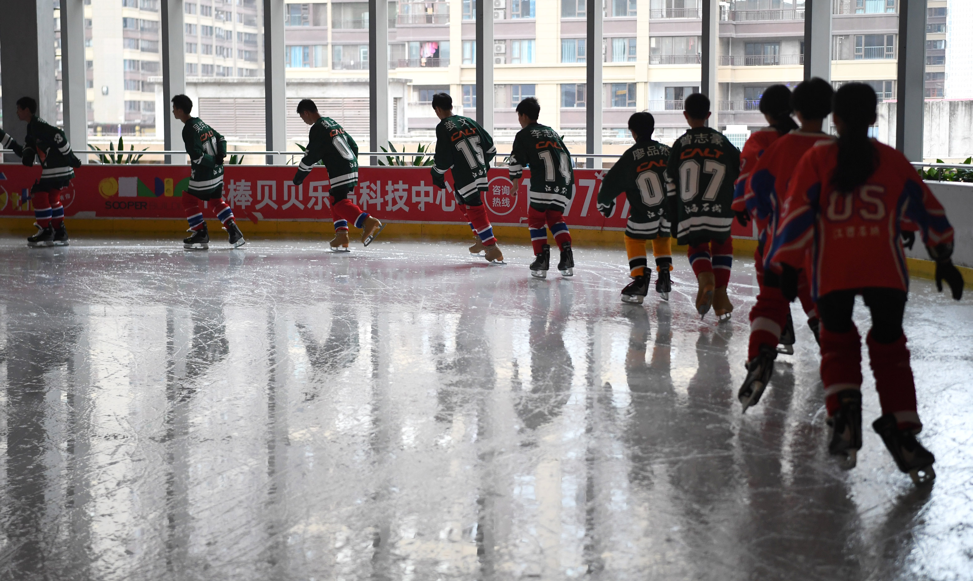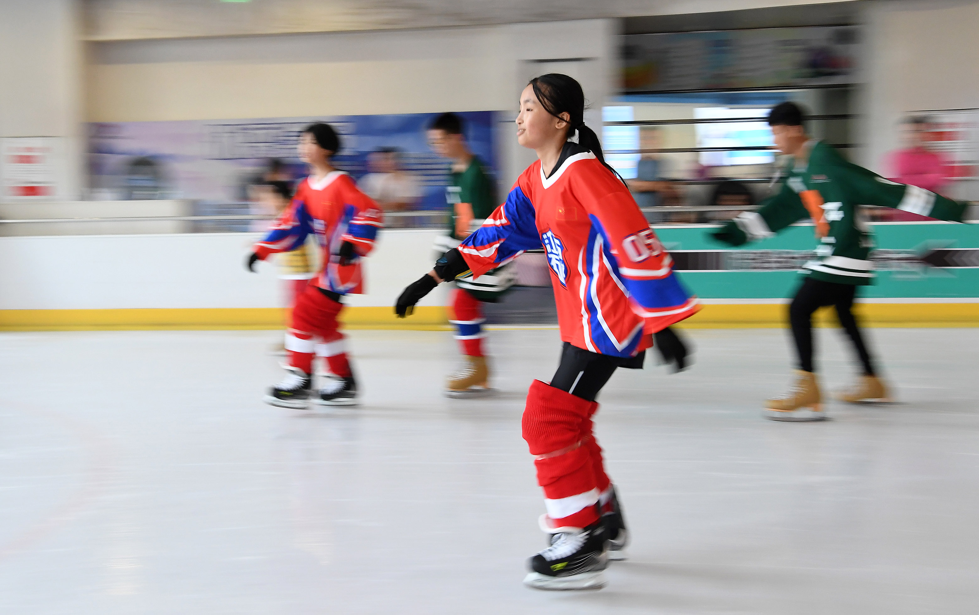 In August, the Shicheng Ice Hockey Team, formed by middle and high school students around the county, would compete at the ice hockey event of 2nd National Youth Games, representing Jiangxi Province. Before that, they headed to the city of Ganzhou for adaptive training to transfer from roller hockey to ice hockey, where they played on the rink for the first time.