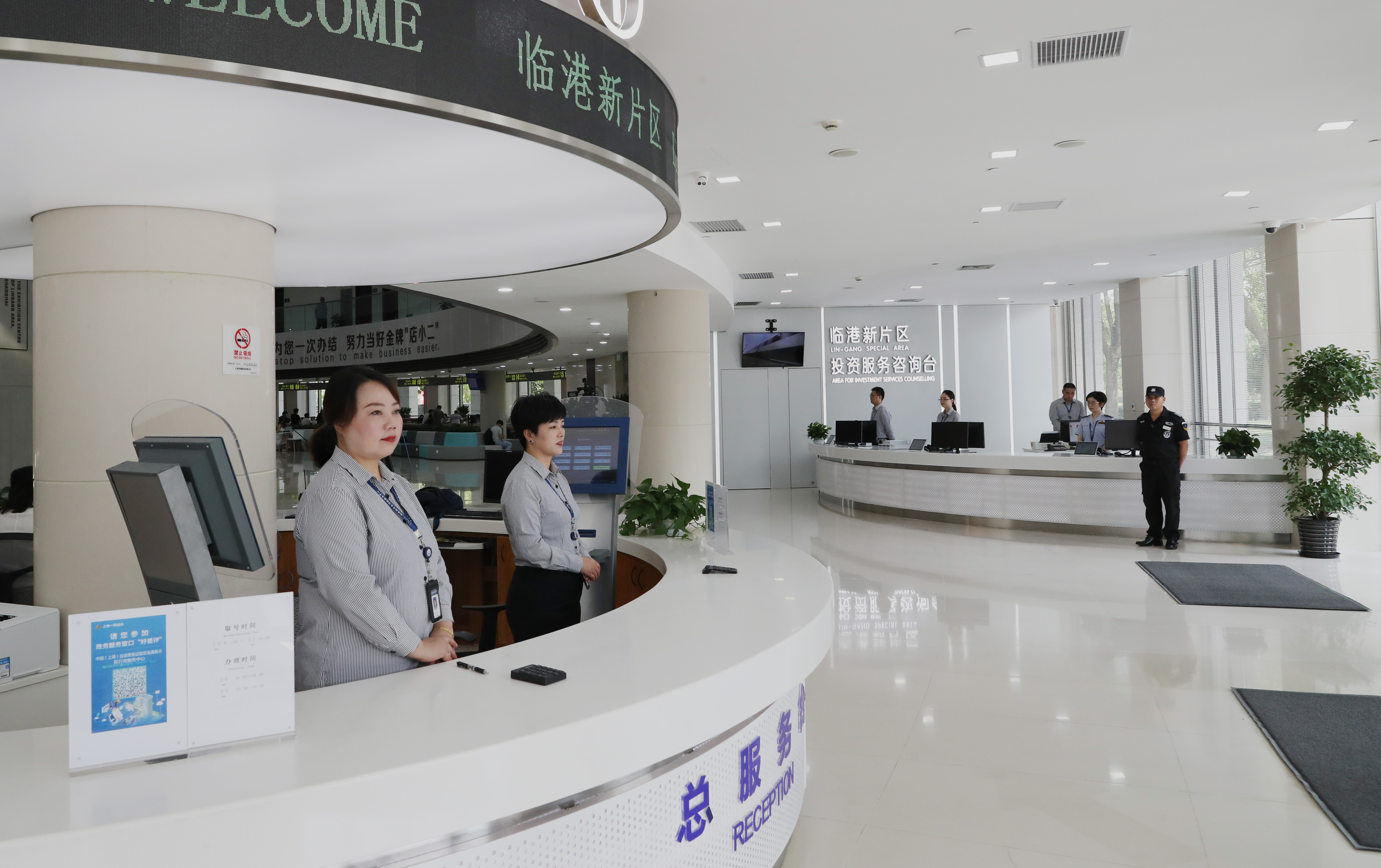 Photo taken on Aug. 20, 2019 shows an interior view of an administrative service center at the Lingang area of the China (Shanghai) Pilot Free Trade Zone in east China's Shanghai. (Xinhua/Fang Zhe)