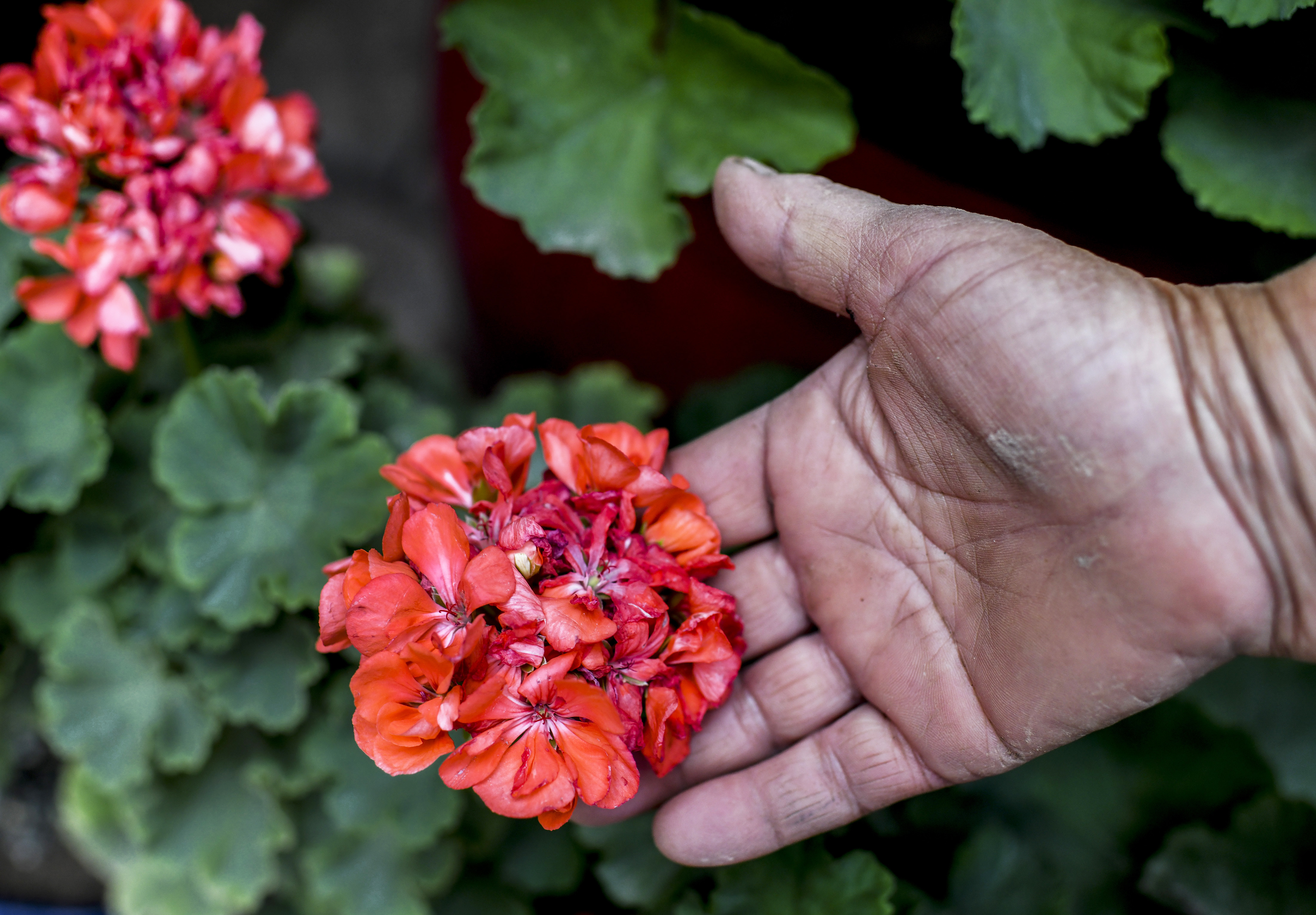 Salima Sultan checks the growth of flowers at her home in Qianjin Village of Kashgar, northwest China's Xinjiang Uygur Autonomous Region, Aug. 18, 2019. (Xinhua/Wang Fei)