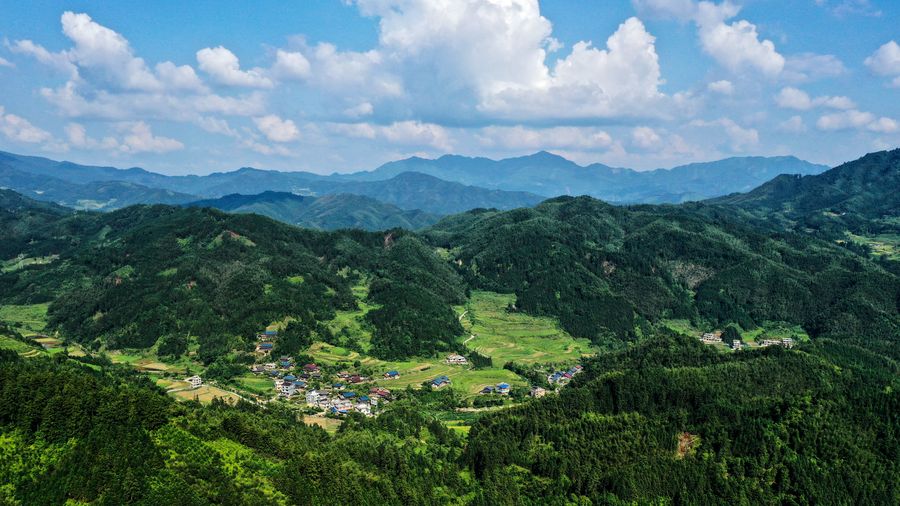 Aerial photo taken on Sept. 11, 2019 shows the autumn scenery of Sirong Township in Rongshui Miao Autonomous County, south China's Guangxi Zhuang Autonomous Region.(Xinhua/Zhang Ailin)