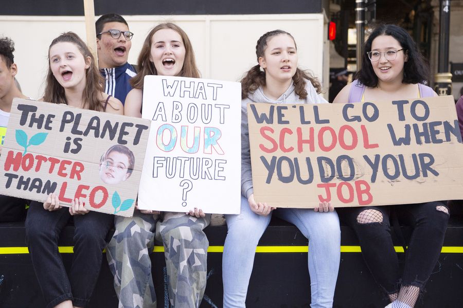 Greek students take part in a school strike for climate change in Athens, Greece, on Sept. 20, 2019.(Xinhua/Marios Lolos)